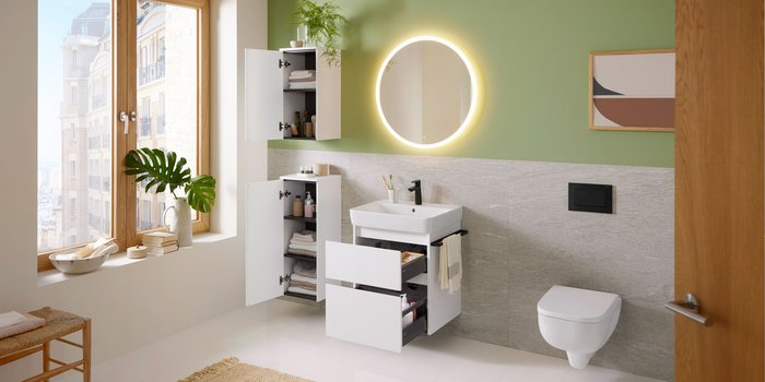 Geberit präsentiert die beliebten Badmöbel Renova Plan und Renova Compact in modernisierter Ausführung. Sie zeichnen sich durch ein zeitloses Design, mehr Komfort und Stauraum sowie eine einfache Montage aus. Robuste Oberflächen und hochwertige Beschläge sorgen für Langlebigkeit und Pflegekomfort – eine verlässliche und wirtschaftliche Lösung für private Bäder und professionelle Bauprojekte. Die modernisierten Badmöbel sind ab 1. April 2026 erhältlich.