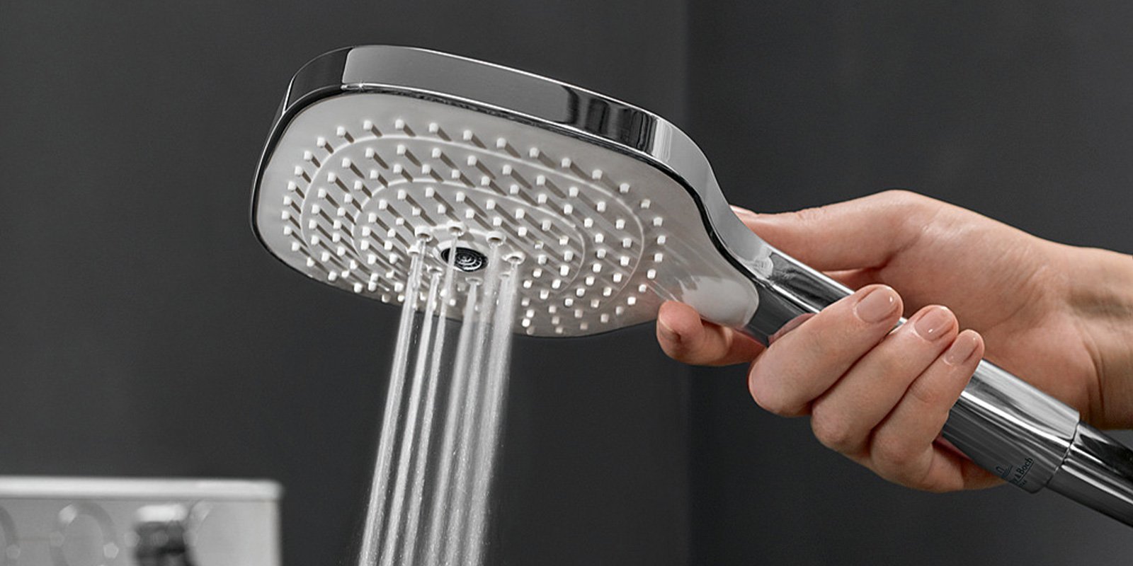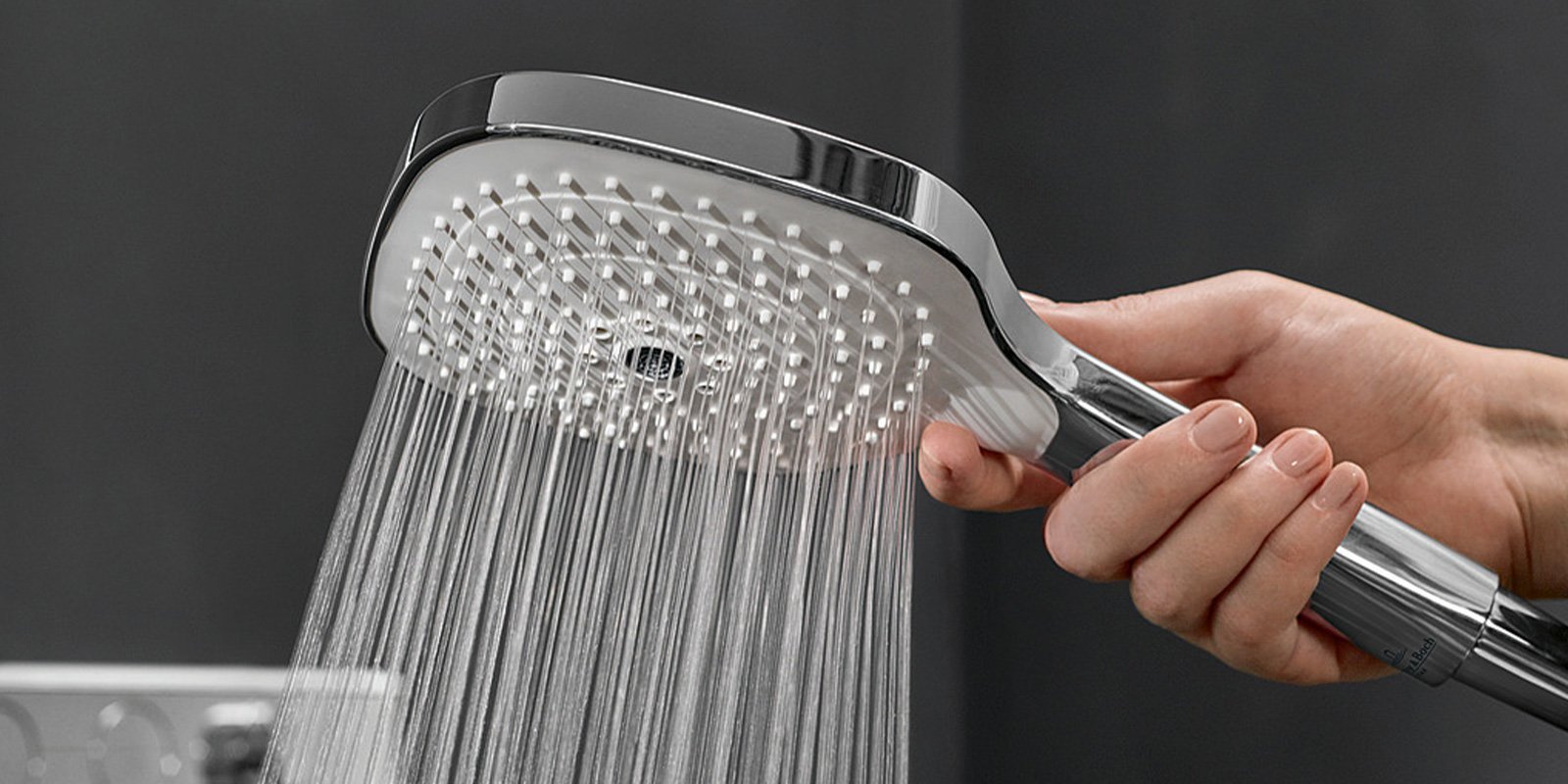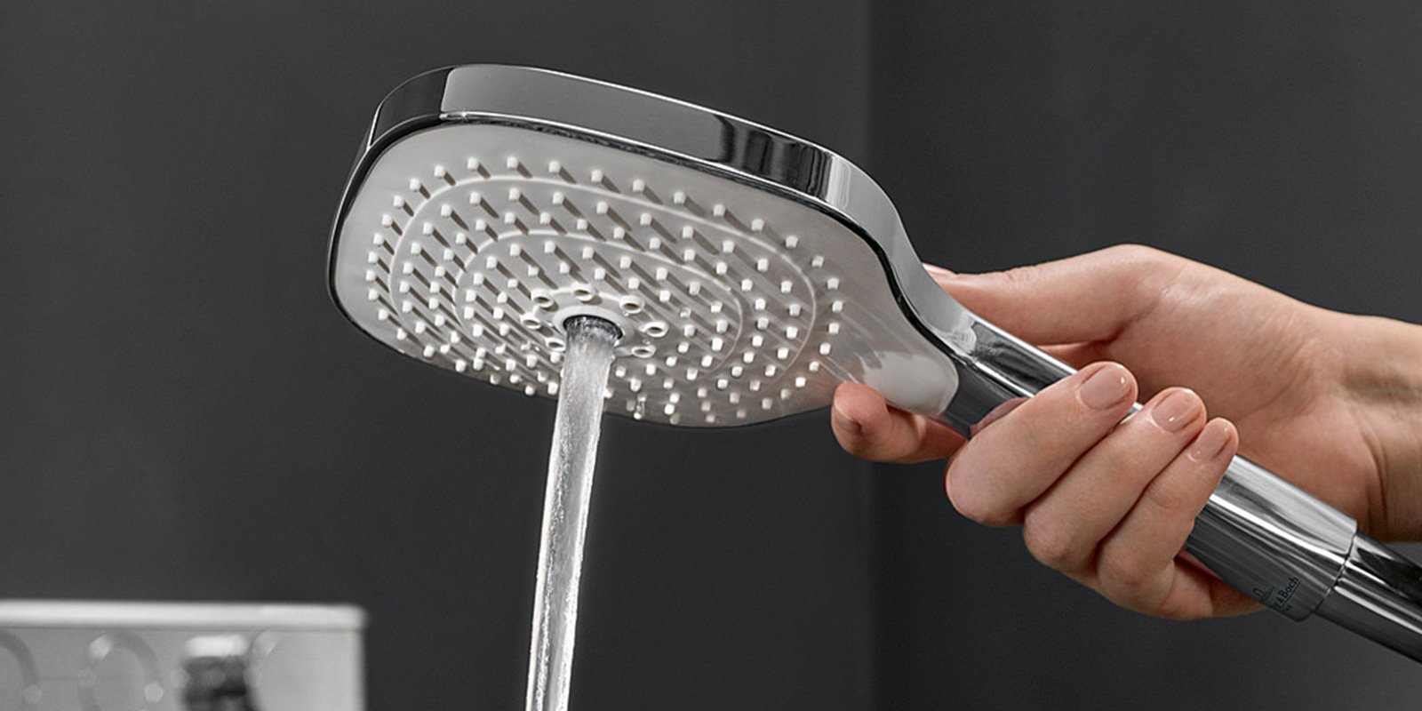 Die 130 mm große Handbrause, die ein spannendes eckiges Design zeigt, bietet drei Funktionen: Neben einem samtweichen Relax-Duschstrahl können ein pulsierender Massagestrahl mit acht Düsen und ein kristallklarer, mittiger Laminarstrahl gewählt werden. Höhe, Position und Winkel der Handbrause lassen sich ohne einen zusätzlichen Bedienknopf einstellen.