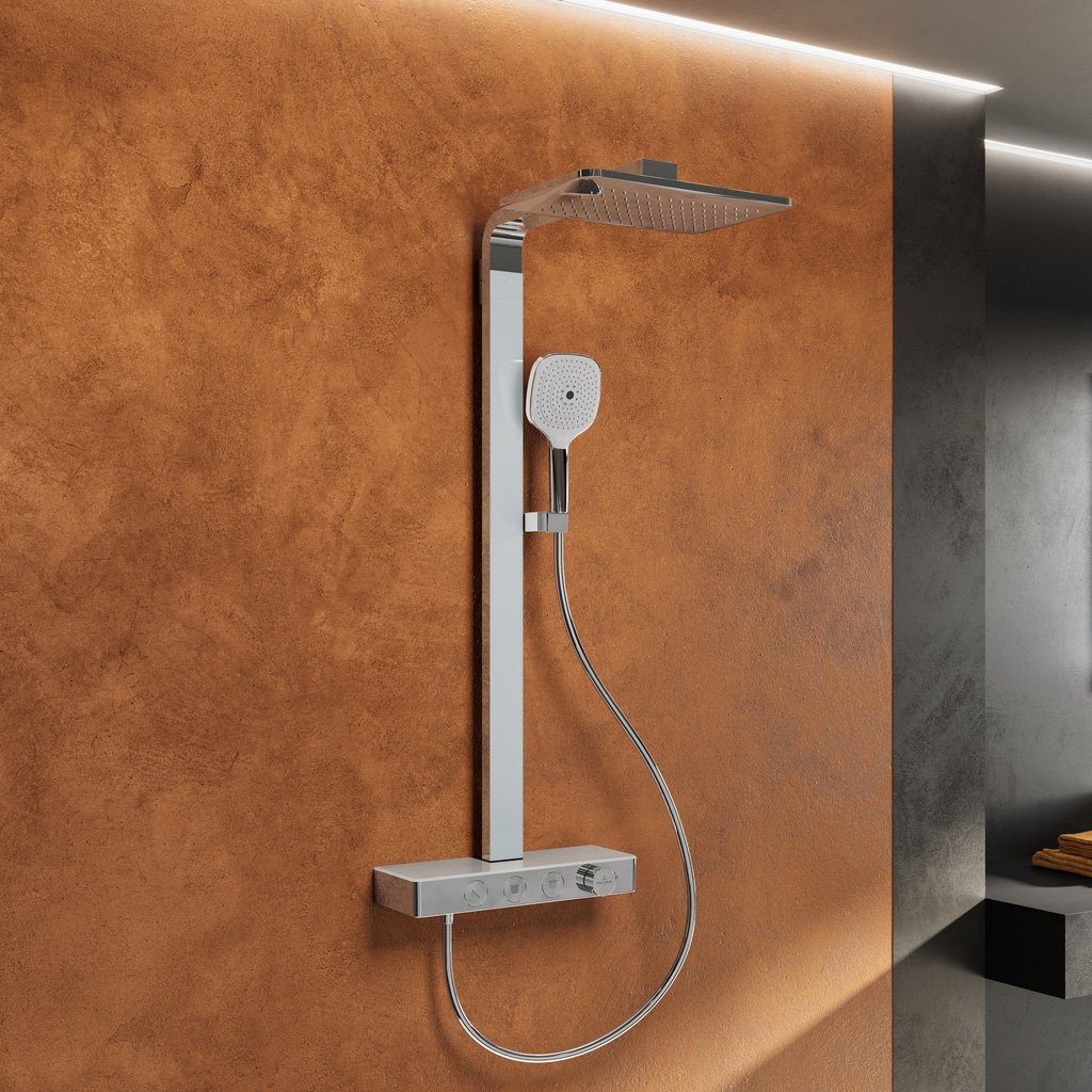 Das Sortiment von Infinity Showers umfasst sieben Artikel für Duschbereich und Badewanne: von der Handbrause über komplette Duschsysteme bis zu Dusch-/Badewannenthermostaten.
